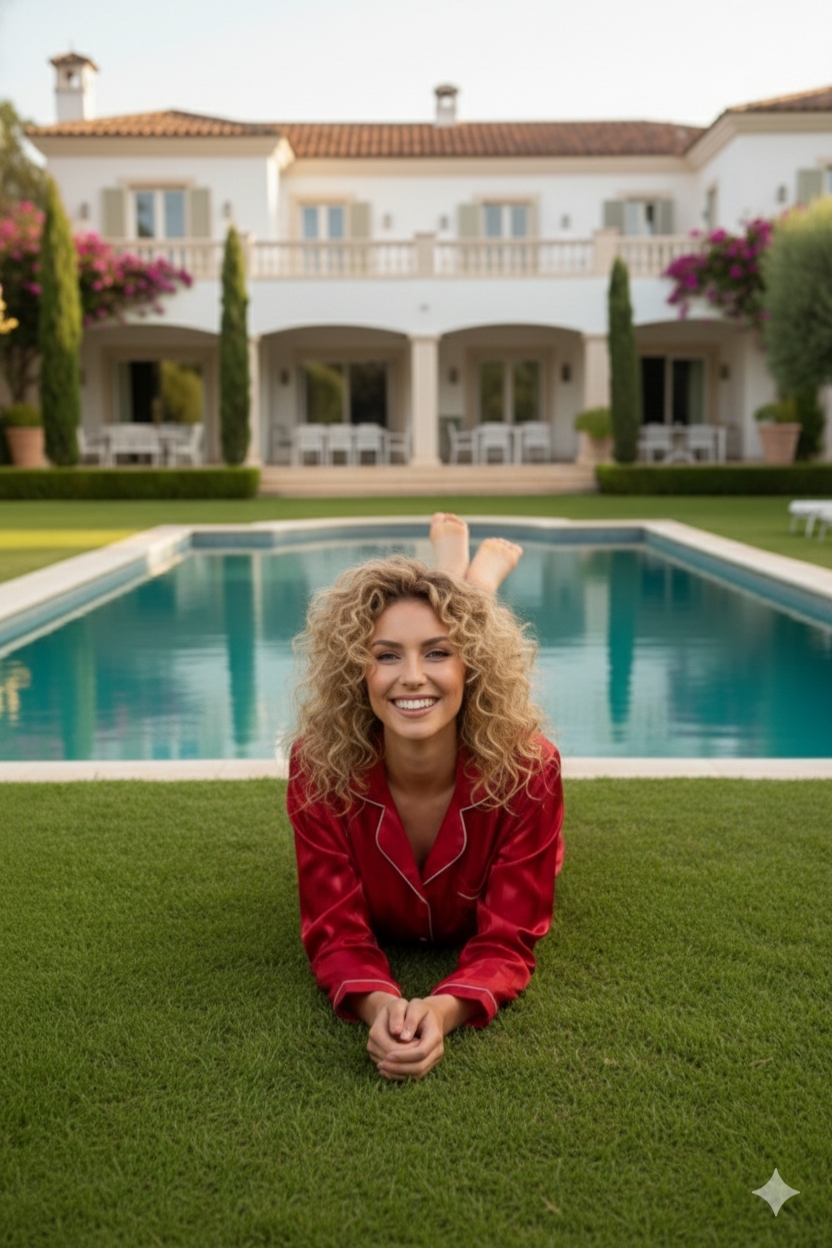Tessuto: 95% Raso di Seta / 5% Elastan (o indicare la composizione esatta del vostro pigiama)